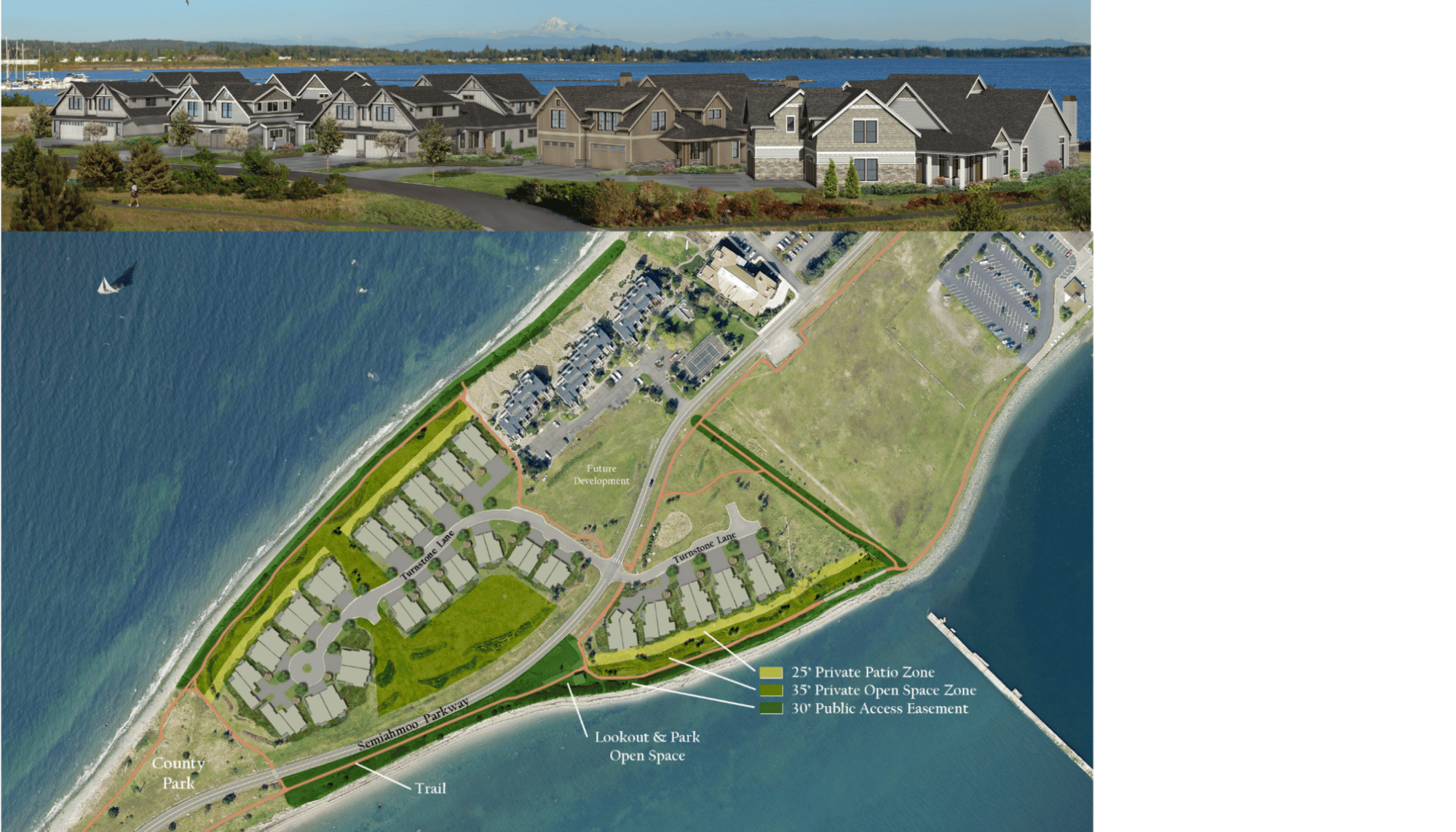 The Semiahmoo Shores Subdivision is a 46-unit zero-lot line single-family development located on the Semiahmoo Spit in Blaine, WA. The project was developed in phases, with the construction of new public and private roads and utility infrastructure, followed by the build-out and sale of all 46 units.