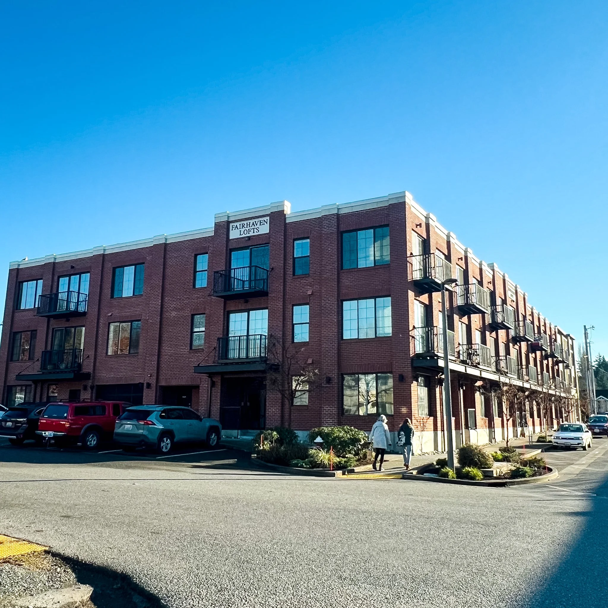 The Fairhaven Lofts and Gallery Apartments are two adjacent multi-family apartment projects located on 13th Street in the Fairhaven Urban Village. The Lofts is a 3 story, 40-unit apartment with on-site parking garage, permitted in 2017, and the Gallery is a 3 story, 10 unit apartment that fills out the block, permitted in 2020. Together these projects improved the abutting streets with new curb, gutter and sidewalk. The Gallery was developed with no on-site parking.